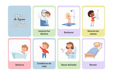 Diseños visuales para que los niños sepan exactamente qué hacer al despertar, desde lavarse los dientes hasta preparar su mochila